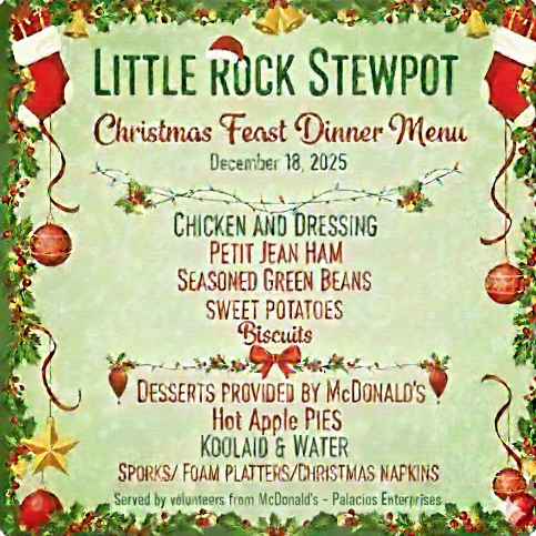 Little Rock Stewpot served a Christmas Feast to Little Rock Stewpot diners on December 18. The meal was prepared by Nancy, Michael and Jason.
