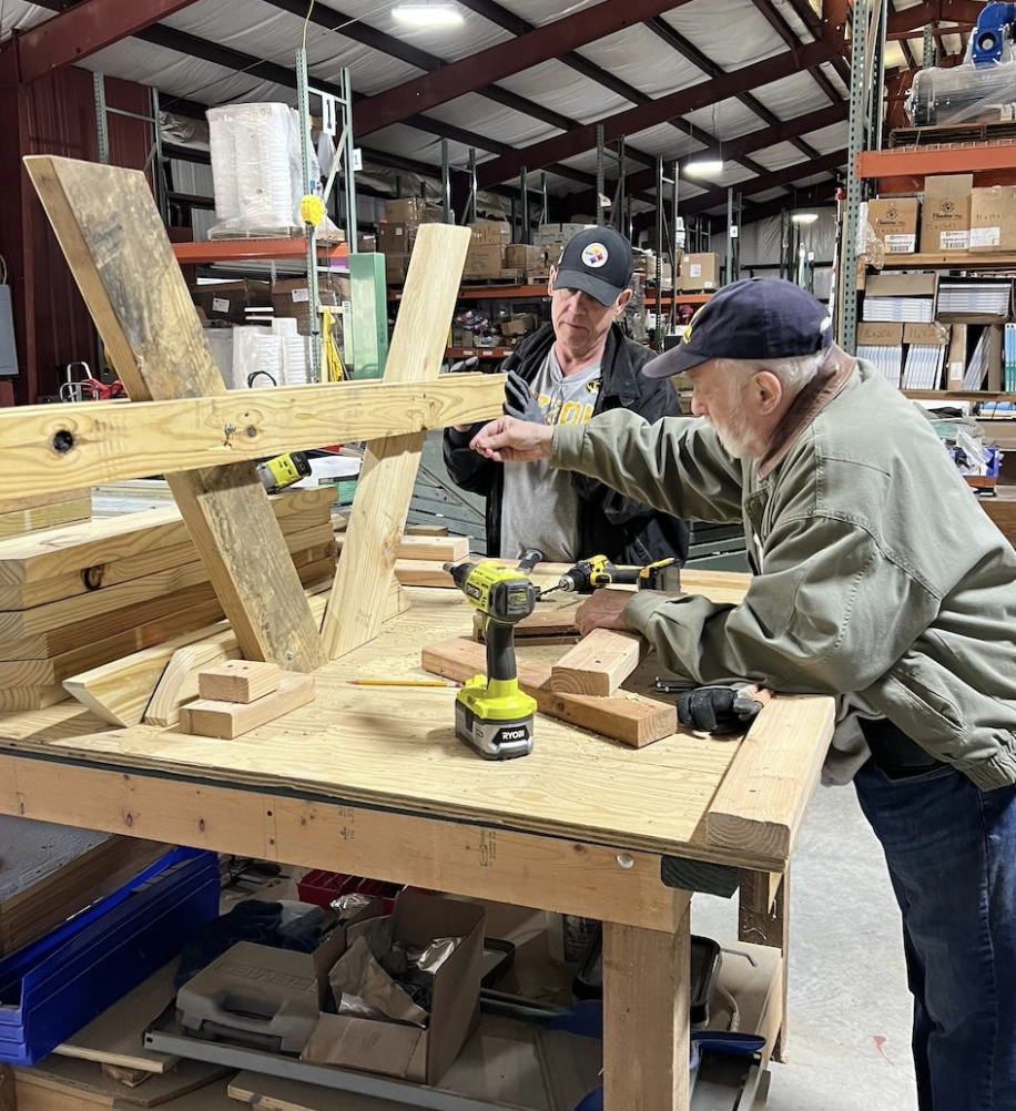 back, they build picnic tables, Adirondack chairs, preschool equipment, and so many of the wooden pieces that make Ferncliff feel like home. This week, their craftsmanship stretched even further into the community. David Gill, former Ferncliff Executive Director